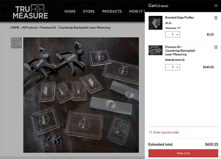 Tru Measure makes Laser Target kits for Precise Measuring of countertops and backsplashes. Projects include e-commerce web design, shopping cart and support for trade shows.